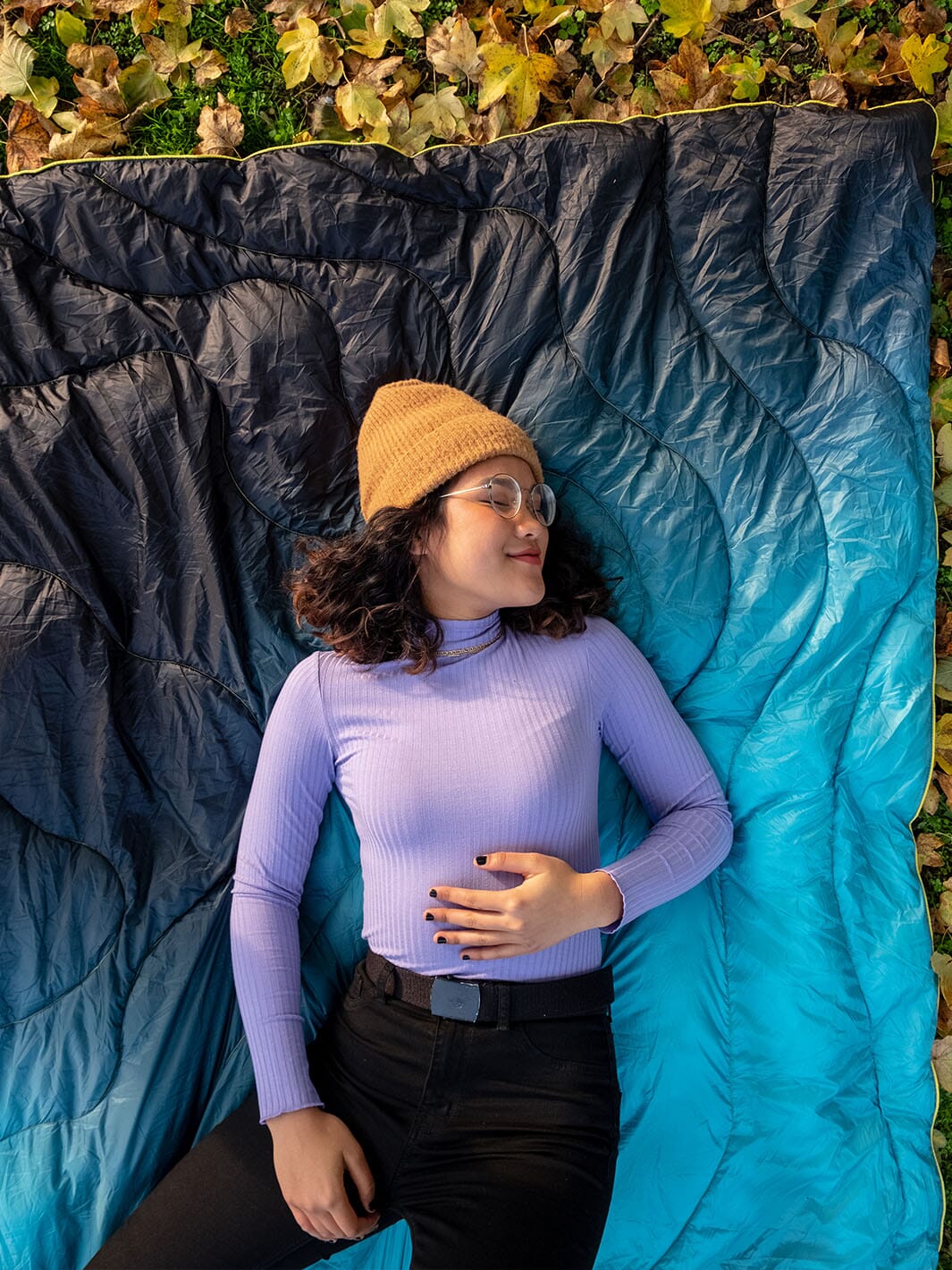 Kalter Morgen im Campervan oder laue Sommernacht im Stadtpark? Mit 20D Ripstop-Nylon und einer wasserabweisenden DWR-Beschichtung macht diese einzigartige Outdoordecke faste jedes Abenteuer mit. Dank der Füllung aus hochwertigen Kunstdaunen wiegt sie fast nichts, aber hält dich genauso warm wie ein richtig guter Schlafsack und ist somit praktisch für jede Jahreszeit gut verwendbar. Zudem ist sie in zwei wunderschönen, winterlich blauen Farbmustern erhältlich. Deshalb lohnt es sich jetzt zuzugreifen- Natürlich nur so lange der Vorrat reicht.