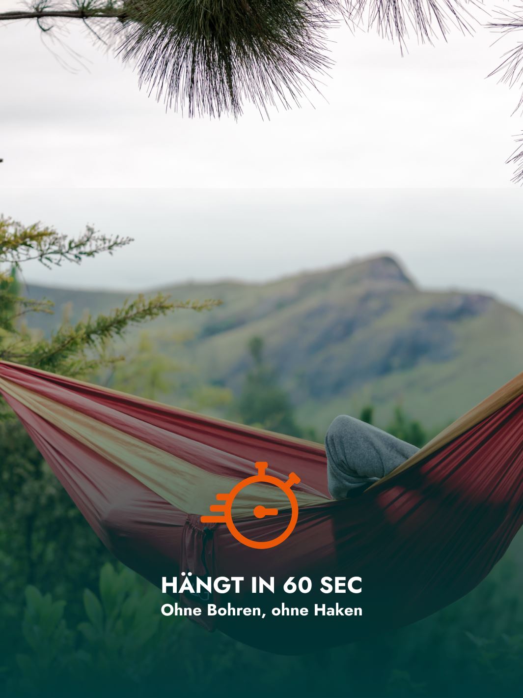 🌎 Entspanne überall mit dem Original aus RTL, ZDF & VOX. Ob im Garten, im Park oder auf der Weltreise: Einfach aufspannen, einhaken, loslassen. Dank der innovativen Aufhängung mit festen Schlaufen brauchst du nur 60 Sekunden und keine Knoten. Drumschlingen. Einhaken. Entspannen.
